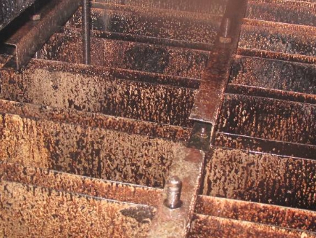 而在塔類容器中,由于蒸汽不足,上部塔盤蒸塔效果也不盡如人意。如圖-8/9。