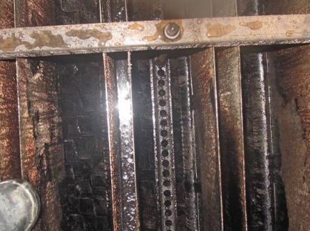溶解設備內積存油垢 Dissolve deposite in unit | 大量退油后,隨蒸氣重油清洗設備內積存油垢 After deinventarary, cleaning deposite carrying with steam |