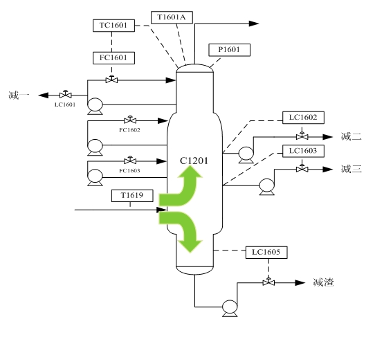 歷次常減壓裝置停工都對減壓塔進行鈍化清洗,防止減壓塔在施工過程中發生硫化亞鐵自燃。其過程是在停工蒸汽吹掃完畢后,對減壓塔進行了硫化亞鐵***鈍化清洗,去除硫化亞鐵等易燃物質。從減壓塔頂部打入鈍化劑,分別建立減一中、減二中的中段循環,塔底回收鈍化劑重復利用。但是在實施效果上,由于在生產過程中減三填料和過汽化油段腐蝕嚴重,中段液相回流不能均勻的分布于填料層上,局部沒有反應到,因此影響了鈍化的效果。